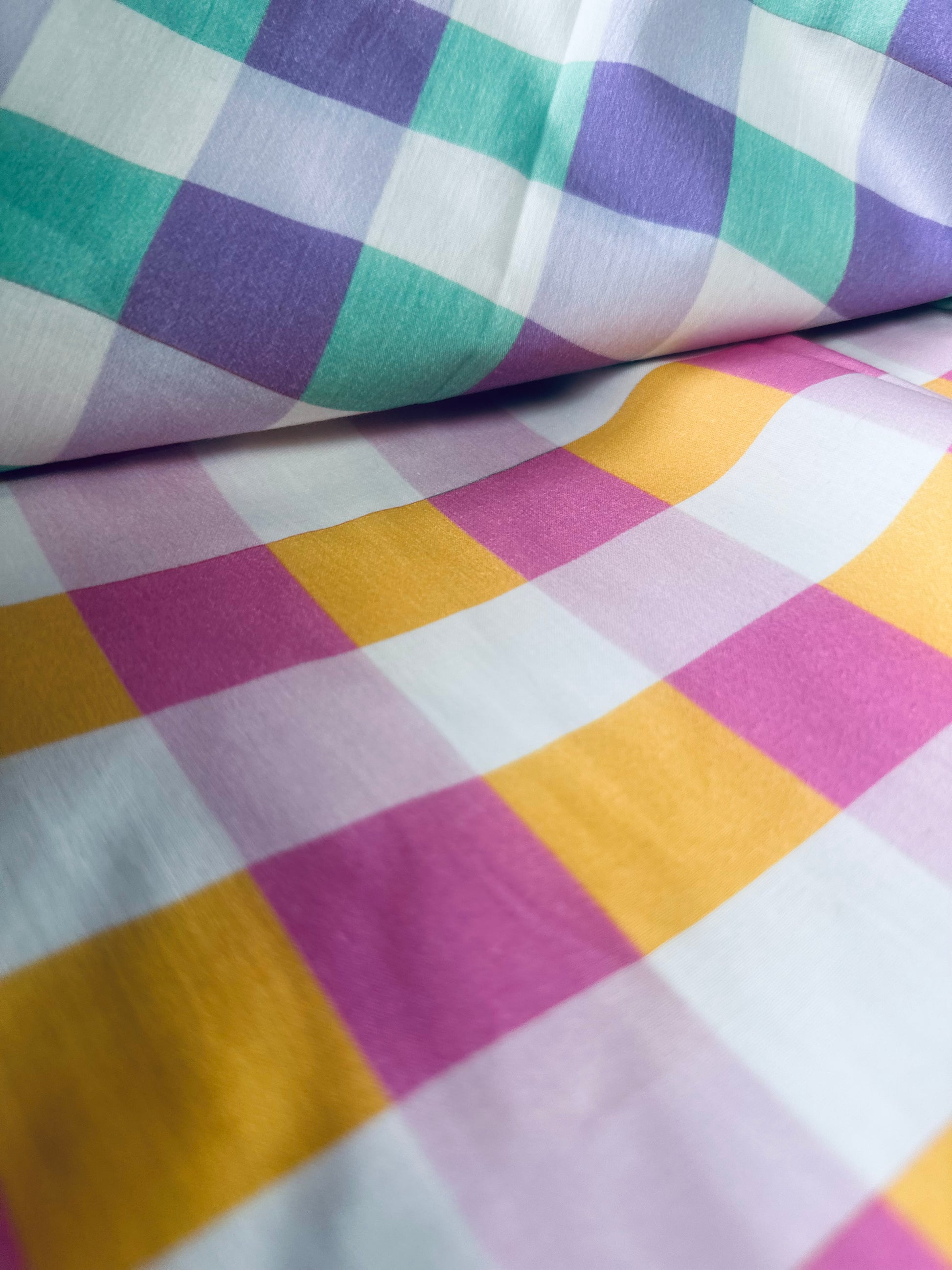 From our turban style twist range this is a gorgeous spring inspired band using gingham deadstock fabric.